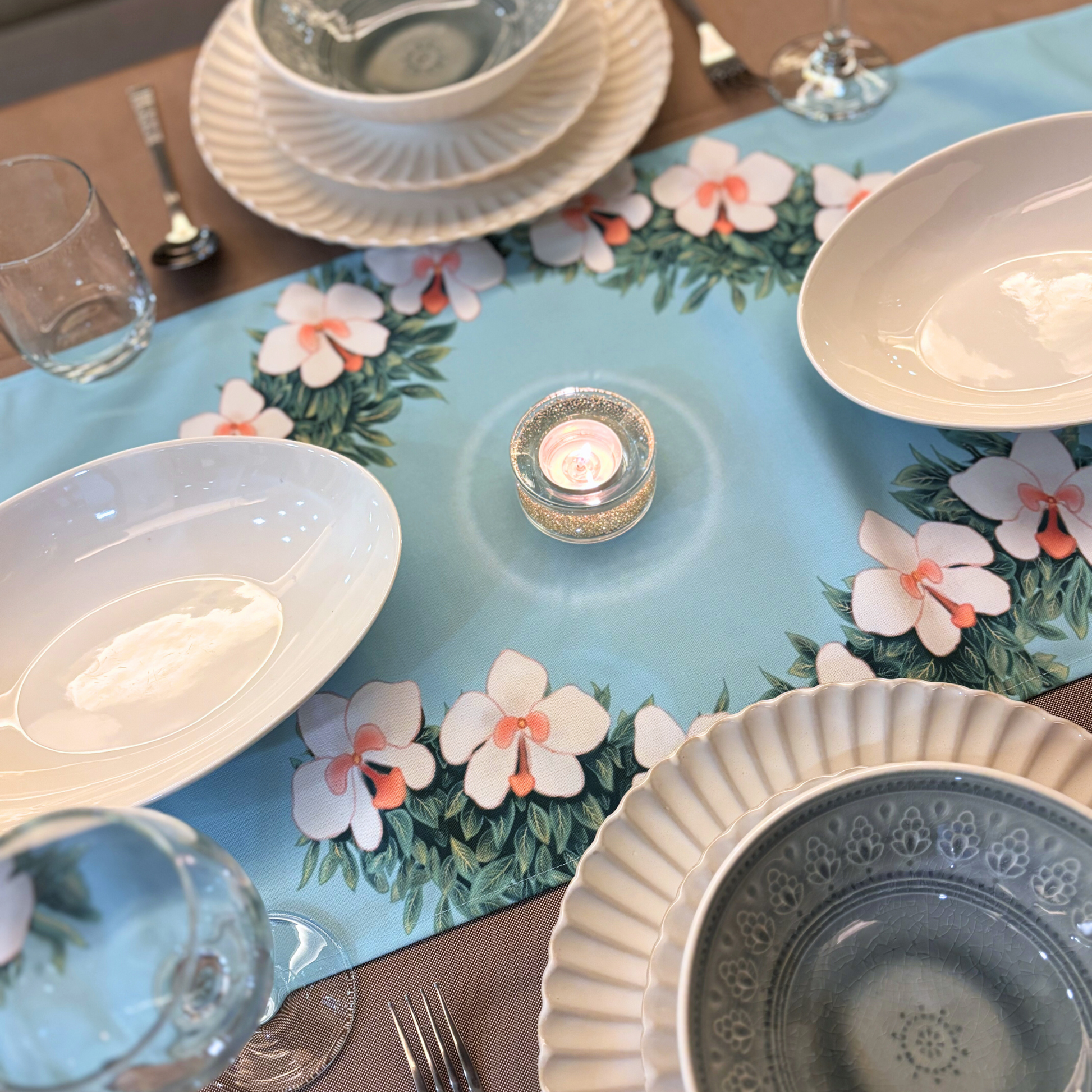 Infuse your home with the delicate beauty of orchids with our Orchid Elegance Table Runner.